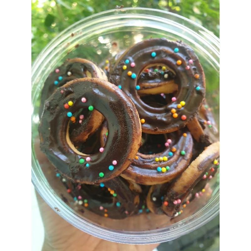 Kerenyahan biskuit berbentuk lingkaran dengan lubang ditengah, dilapisi coklat DCC premium dan dihiasi taburan sprinkles warna warni yang manis dan renyah.