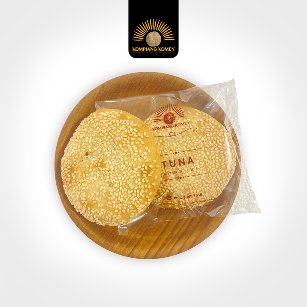 Kompiang Komey Rasa Tuna, dibuat dengan resep tradisional, tanpa bahan pengawet, dengan komposisi terigu, air, gula, dan garam, daging ikan tuna segarmenciptakan rasa gurih untuk setiap gigitan.