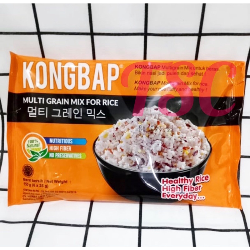 Kongbap Multi Grain Mix terdiri dari berbagai biji-bijian, antara lain : beras merah, beras hitam, beras ketan, kacang hijau, basil, wijen, millet, barley, jagung yang telah teruji memberikan manfaat yang lebih baik dibanding mengonsumsi beras putih saja.