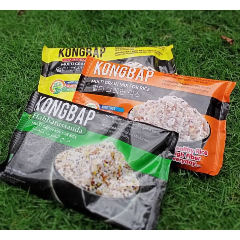 Setiap sajian Nasi Sehat Kongbap Multi Grain Mix mengandung beras merah, beras hitam, beras ketan, kacang hijau, basil, wijen, barley, millet merah, millet putih, dan jagung.