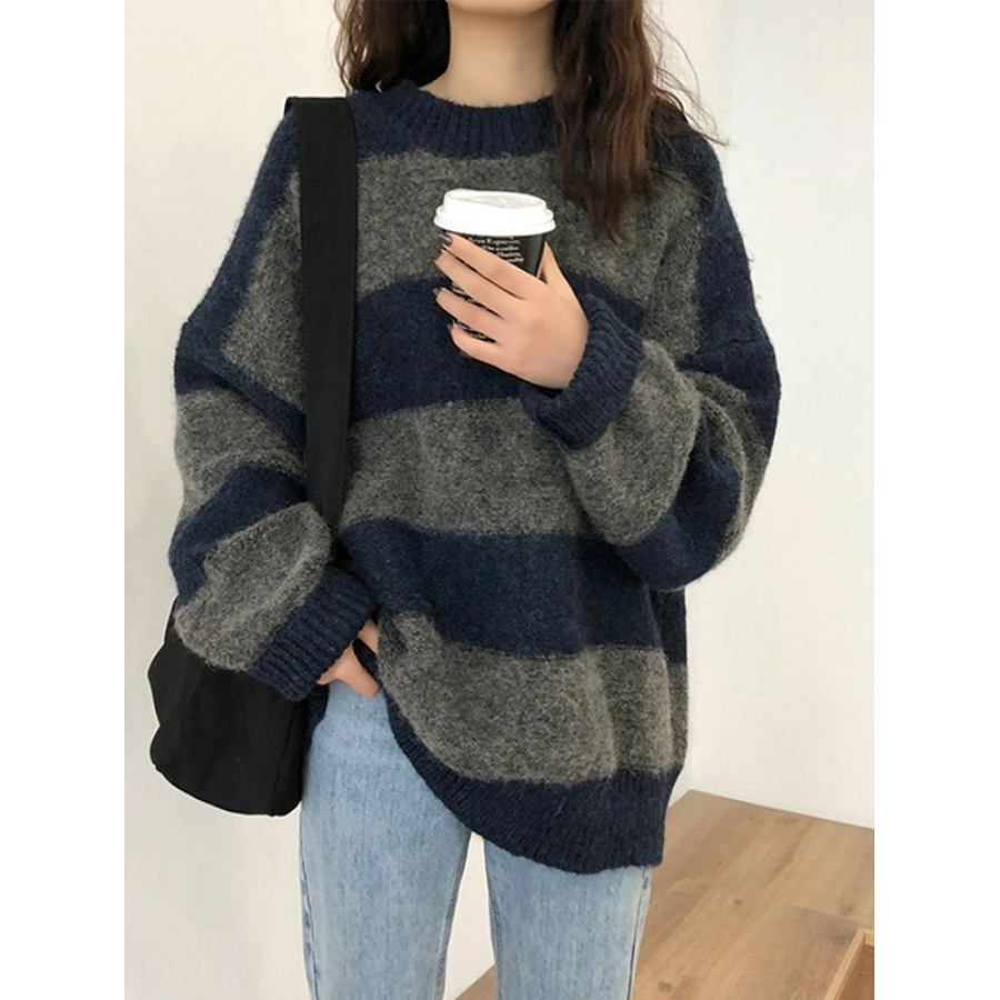 frauen oberteile,kontrastgestreifter strickpullover