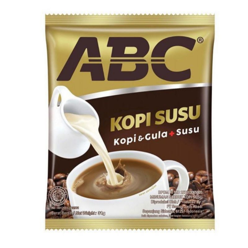 Kopi adalah minuman hasil seduhan biji kopi yang telah disangrai dan dihaluskan menjadi bubuk. Kopi biasa diminum baik pagi hari atau malam hari, bahkan ketika pekerjaan menumpuk kopi pilihan yang tepat untuk disajikan. Kopi juga menjadi salah satu minuman yang banyak diminati, karena manfaat yang berguna untuk menahan kantuk. Selain bisa menahan kantuk, kopi juga memberikan dampak baik untuk kesehatan tubuh. Seiring berkembangnya zaman, rasa kopi menjadi lebih bervariatif. Salah satu kopi dengan banyak varian rasa dan digemari adalah Kopi ABC Susu. Produk ini merupakan kopi bubuk dengan aroma yang khas, gula dan rasa susu yang nikmat. Menjadikan kopi ABC susu, kopi susu yang benar-benar kopi. Teman mantap untuk bangkitkan semangat dan kreativitas Anda.