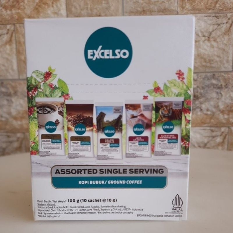 Kopi Excelso Bubuk isi 10 sachet dengan 5 varian jenis: