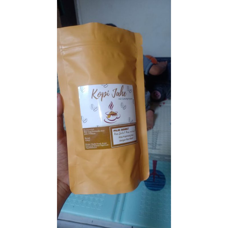 murni terbuat dari kopi robusta pilihan dan jahe emorit yang terkenal dengan aromanya yang kuat.