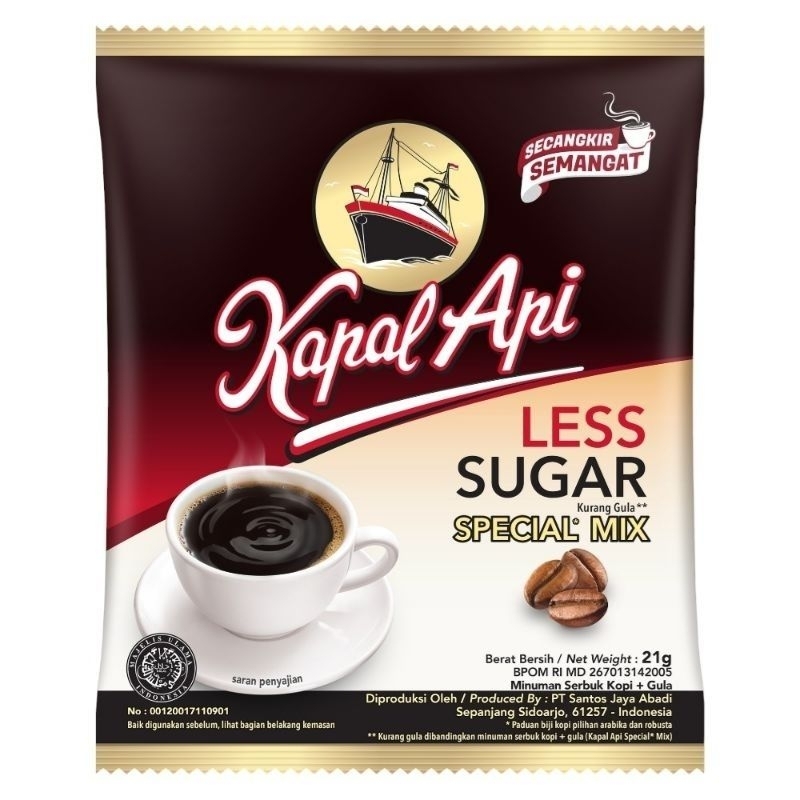 Kapal api Less Sugar Hadirkan citarasa kopi yang tidak terlalu manis ataupun terlalu pahit. Rasakan kembali semangat dan mood yang sebelumnya hilang lewat aroma kapal api less sugar Kopi Kapal Api terbuat dari biji kopi pilihan dan diproses dengan mesin yang paling modern yang menghasilkan kopi berkualitas tinggi dengan Aroma terbaik dan Rasa yang enak. Mulai hari Anda dengan secangkir semangat untuk Indonesia dengan Kopi Kapal Api