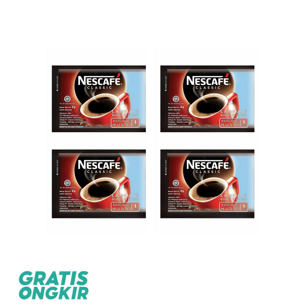 Nikmati cita rasa kopi berkualitas tinggi dengan Kopi Nescafe Classic dalam kemasan praktis. Setiap saset berisi 2 gram kopi bubuk yang siap menyegarkan hari Anda dengan keharuman dan rasa kopi yang autentik. Dengan kemasan renteng berisi 10 saset, Anda dapat menikmati kopi enak kapan saja dan di mana saja.