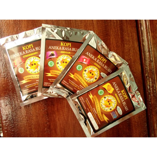 dibuat dari kopi lampung terbaik dan ekstrak buah berkualitas, penambahan krimer nabati dan gula sebagai pelengkap. menjadikan produk kopi ini layak di cintai oleh para coffee lovers.
