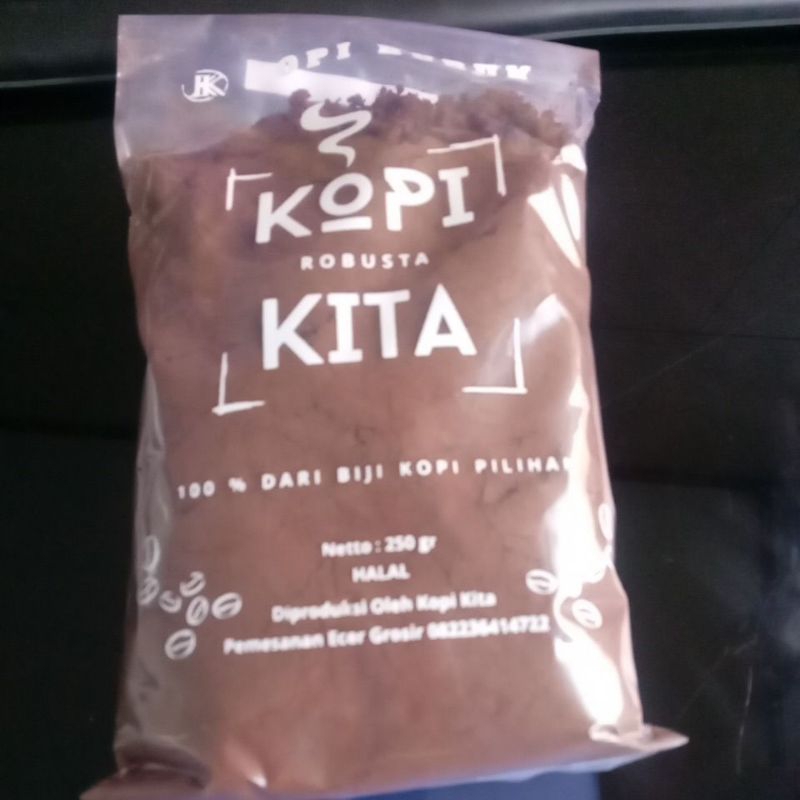 Kopi Robusta 100% asli biji pilihan, dengan tingkat kematangan medium digiling sangat halus