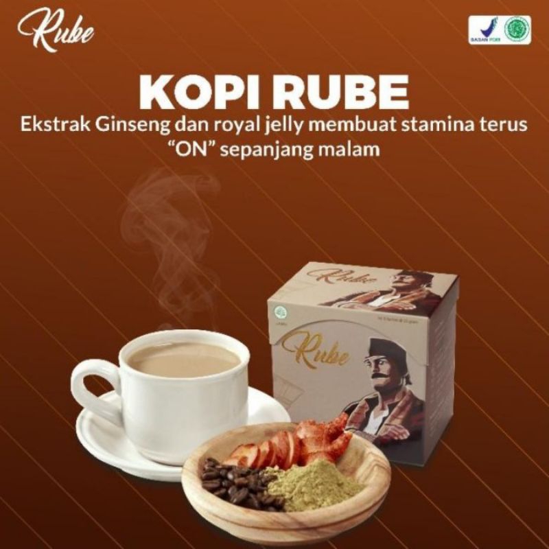 Jangan lewatkan Kopi Rube, sajian pilihan bagi keperkasaan pria! Dikemas dalam, terdaftar BPOM (POM TR203241591) dan bersertifikat Halal MUI (07150008451209).