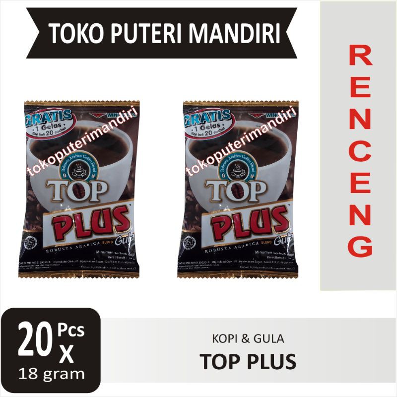 Kopi bubuk instan dari TOP ini hadir dalam varian Kopi Plus Gula. Kopi ini cocok untuk menemani Anda bersama teman dan keluarga tercinta disaat santai bersama. Terbuat dari kopi Robusta Arabica pilihan yang diolah secara seksama sehingga menghasilkan kopi berkualitas dengan rasa istimewa. Kemurnian kualitas biji kopinya menghasilkan cita rasa kuat dan berkarakter serta rasa gurih yang mantap meresap dalam setiap tegukan. Aroma segar dan harum khas biji kopi alami langsung merebak saat diseduh.
