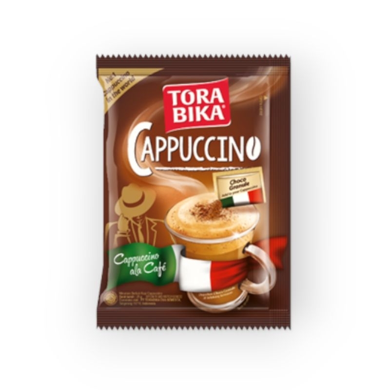 Torabika Cappucino, paduan antara kopi instan, gula dan krimer. Taburkan pula Choco Granule di atas krim cappucino agar menambah rasa istimewa anda bersama Torabika Cappucino.