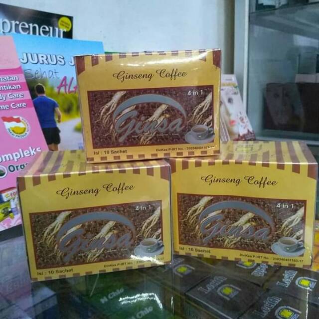 Ini niih..... GINSA Kopi Gingseng NASA ☕☕yg merupakan perpaduan antara kopi pilihan yg bermutu,ginseng,gula dan creamer nabati yang berkualitas.