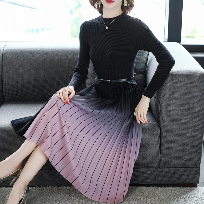 Korean, платье-свитер, вязаное платье модные женские вязаные платья, элегантные женские плиссированные свитера с высокой талией, платье осень, ...
