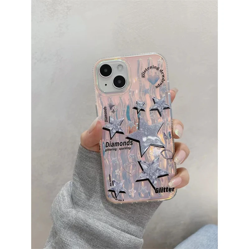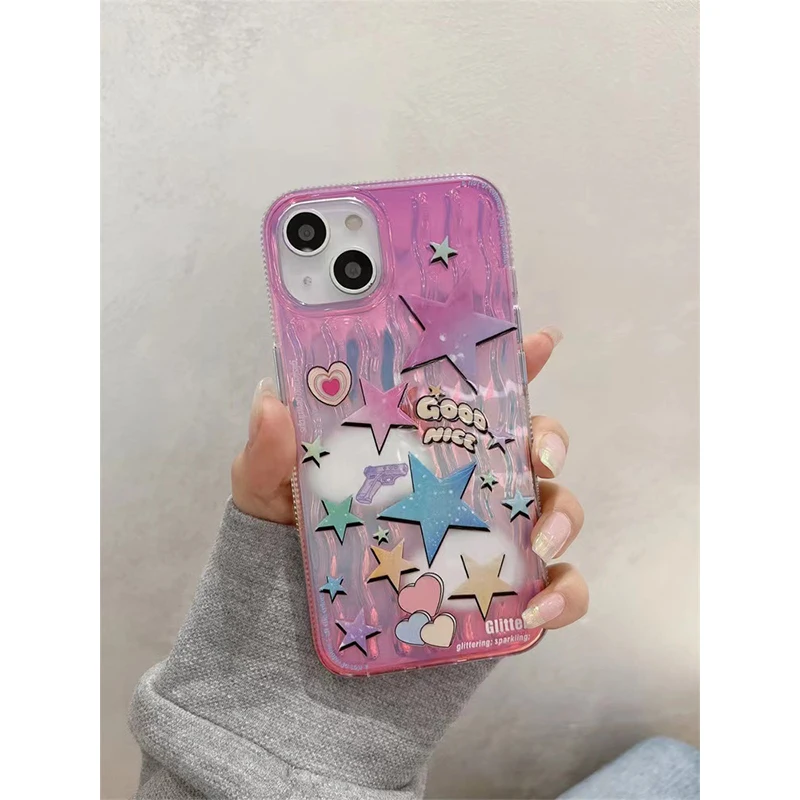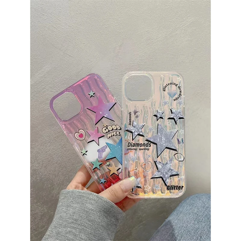 Korean Laser Waves Star INS Phone Cases for Iphone 11 Case 12 13 14Pro Max Fall Prevention Cool Punk Hip Hop Cute Soft Shell Y2K