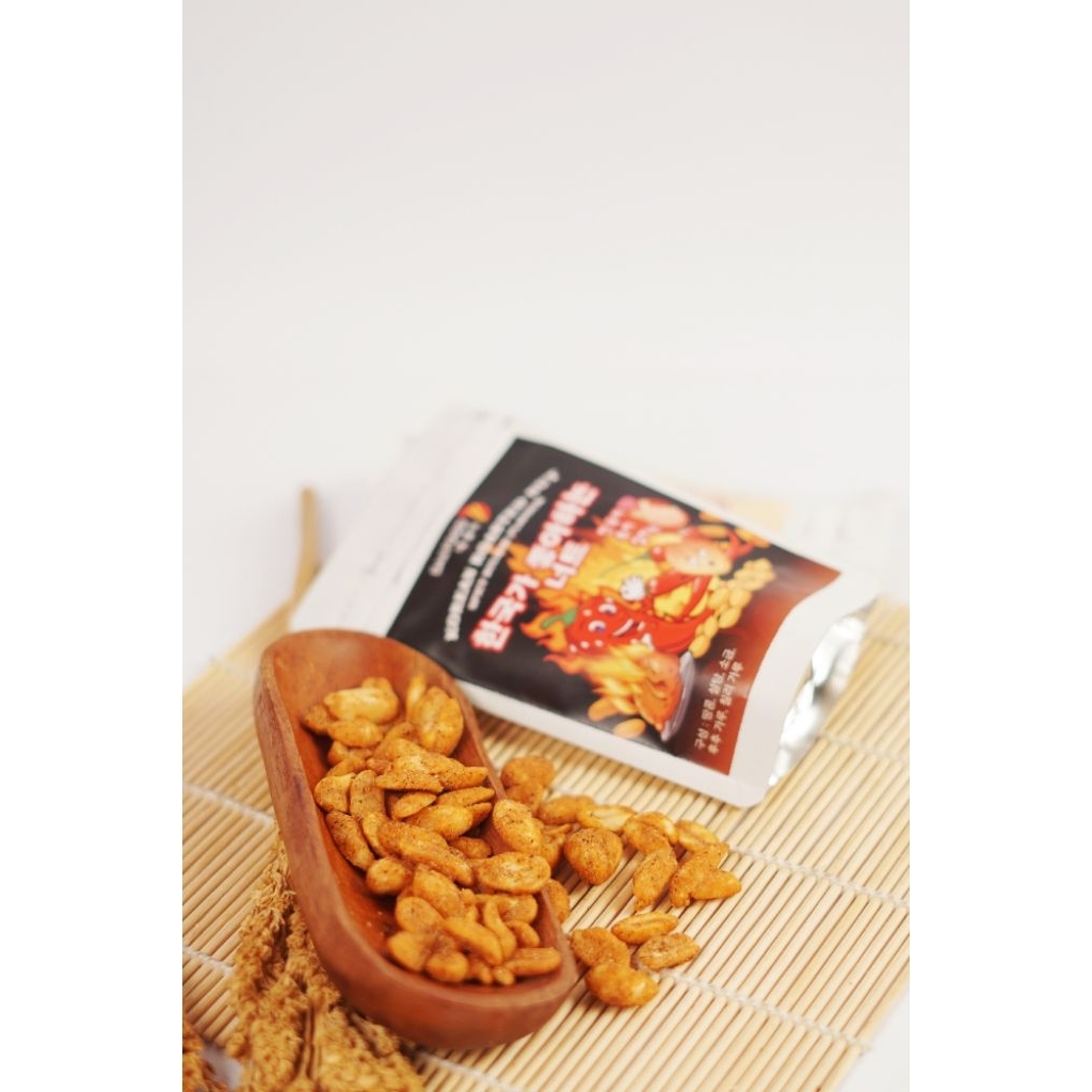 Kacang Korea, kacang tanah lunak bersalut karamel yang dioven dan memiliki beberapa varian rasa