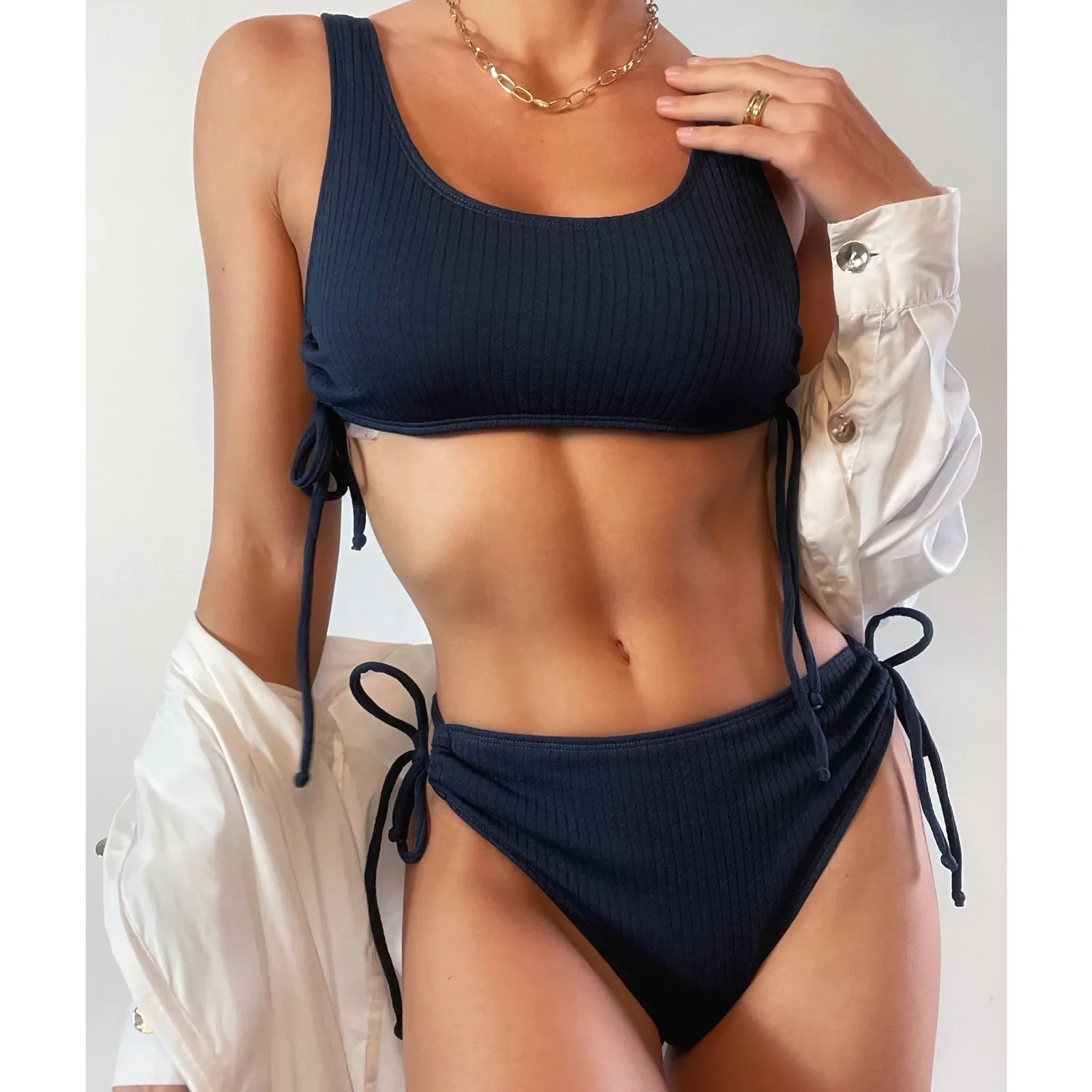 Женское плиссированное платье в горошек, синее Сетчатое платье с поясом, украшенное бусинами, весна-лето 2021