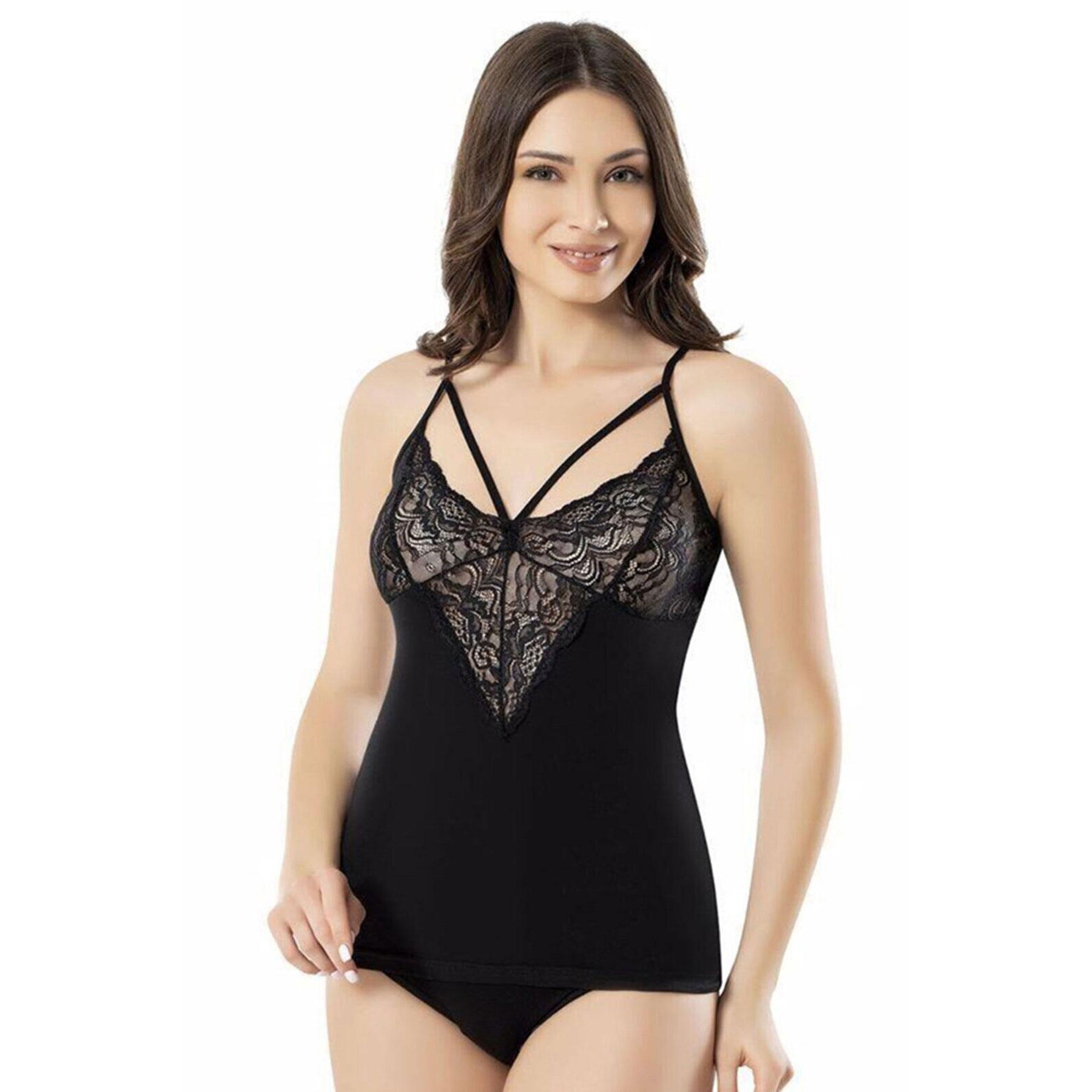Kota Women Cross Cord Strap Singlet с кружевной деталью из хлопка 6384 S-M чёрный