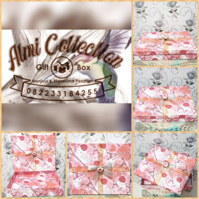 Kotak Kado/Gift Box Full Lapisan Paris Pink Bunga Rose