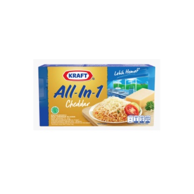 Kraft all in one rasa keju yang ringan, dengan tekstur yang keras menjadikannya lebih mudah diparut dan diiris,cocok untuk dimasak dan dipanggang.