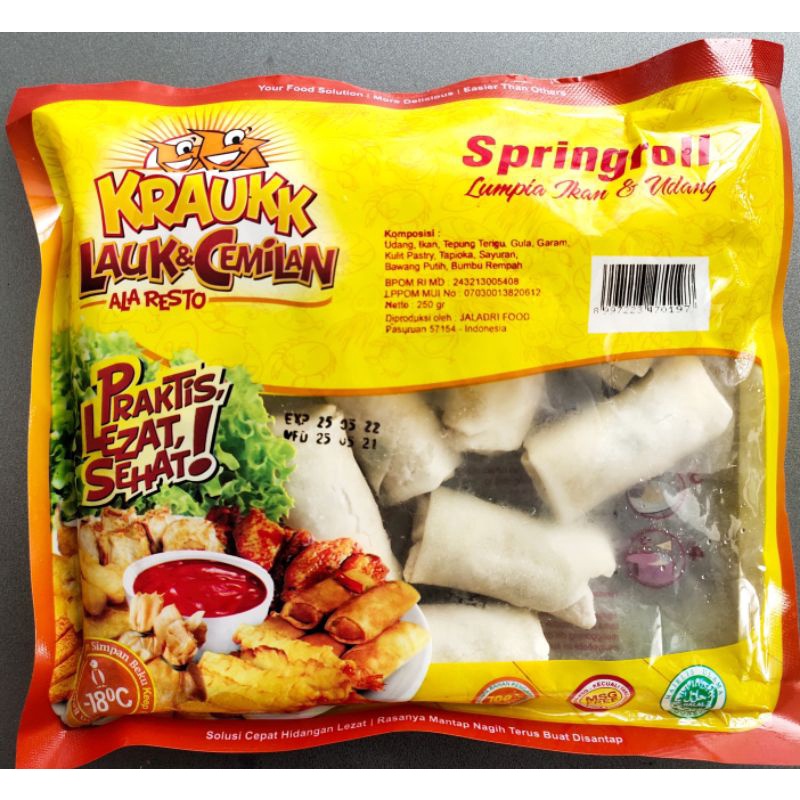 Kraukk SpringRoll 250gr Olahan Tepung Ikan Dan Telur Puyuh Yang Telah Diracik Bersama Bumbu Rempah Alami Dalam Balutan Kulit Kembang Tahu, Menjadikannya Salah Satu Lauk Favorit Keluarga Indonesia Karena Rasanya Yang Lezat dan Bentuknya Yang Unik.