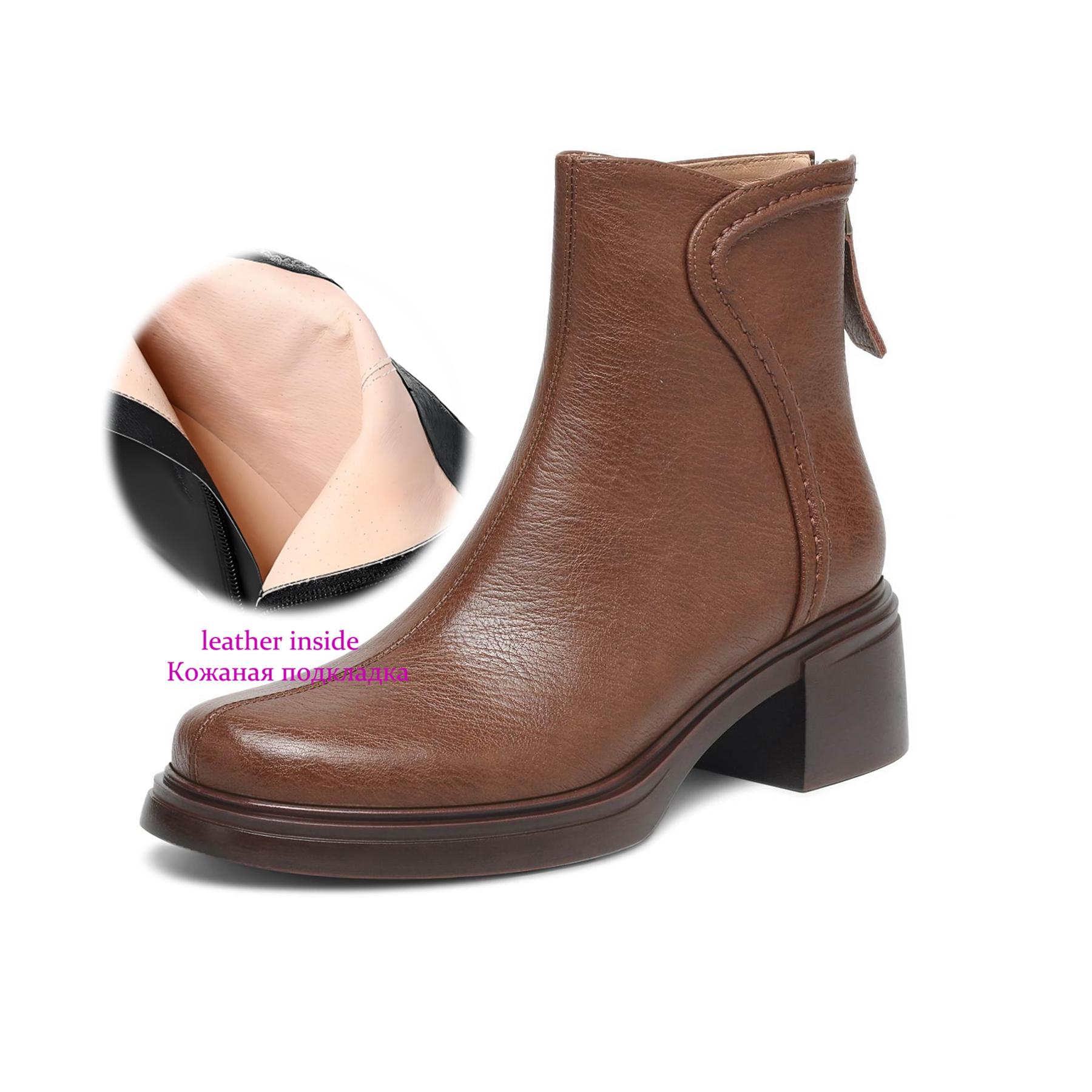 Krazing Pot Кожа коровы Круглый носок Толстый каблук Ботильоны Челси Размер 42 Задняя молния Женские Сохраняющие тепло Ботильоны 42