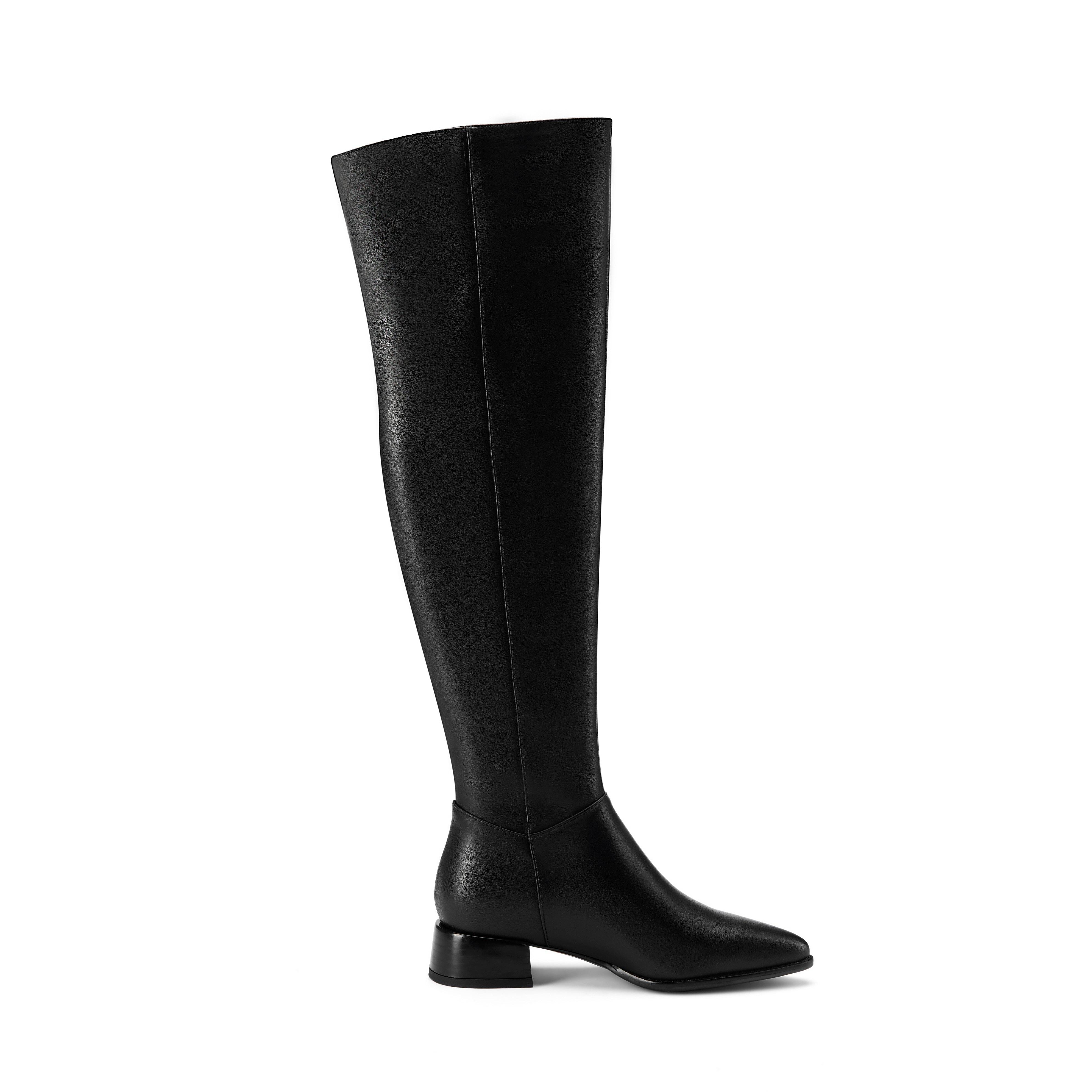 Krazing Pot Осенне-зимние туфли из коровьей кожи на толстом каблуке, размер плюс 45, размер 44, женские, сохраняющие тепло, с молнией, украшениями, выше колена 45 чёрный