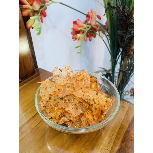 Kripik kaca adalah salah satu cemilan yang bisa menemani waktu santai kalian. Dengan berbagai macam varian rasa yaitu cabe merah daun jeruk dan cabe hijau daun jeruk.