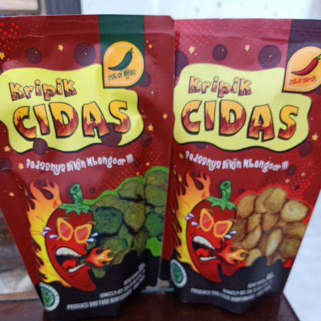 Keripik cidas rasa bawang, cabe hijau dan cabe merah, pedasnya bikin mbengor