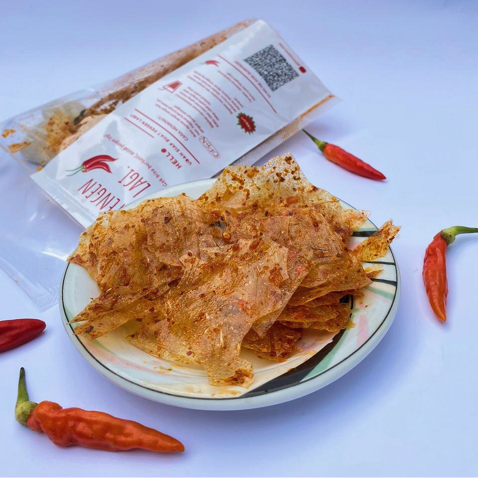 Kripik Kaca bukan dari kaca beneran, terbuat dari bahan olahan singkong yang di iris tipis-tipis sehingga terlihat seperti kaca rasa pedas.