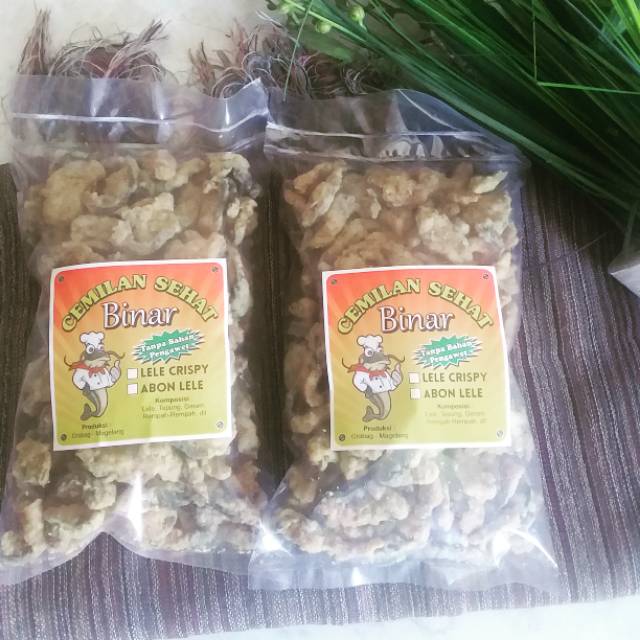 Kripik Lele dengan rasa yang gurih dan renyah, diolah dari ikan lele segar dan bumbu rempah, tanpa msg dan bahan pengawet