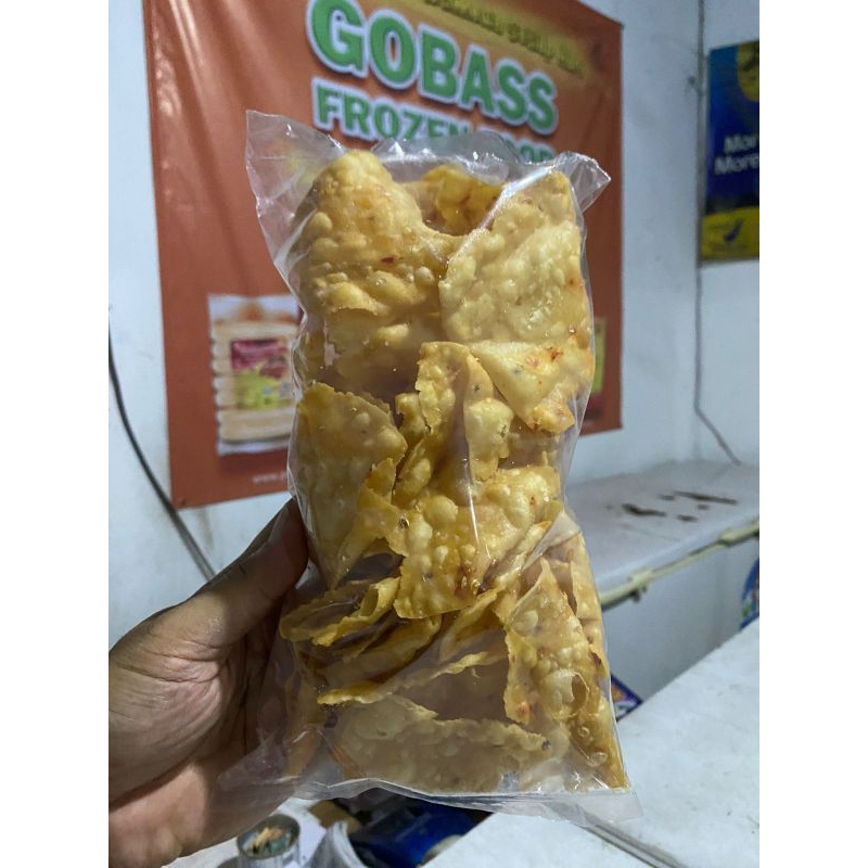 Ready kripik Pangsit Bakso Khas Jombang jelas uwenak ada pedes² e rek berat 140gr per pack cocok banget buat lauk maupun cemilan