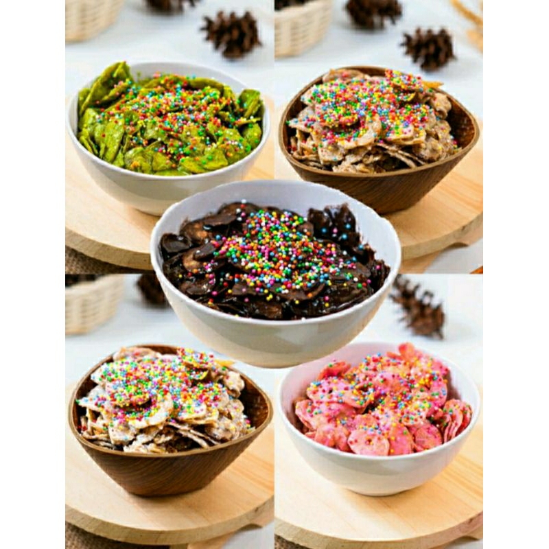Kenalin nih ada produk kita yang pasti bikin kamu nagih yaitu "KERIPIK PISANG LUMER" dibalut dengan beberapa varian rasa seperti Chocolate, White Chocolate, Tiramisu, Matcha, Strawberry dan sangat cocok di padukan dengan topping Mete, Almond, Kacang Tanah, Choco Chips, Roasted Cheese, Rainbow Sprinkles, Parutan Rasa. Silahkan di padukan sendiri sesuai selera kalian yaa.