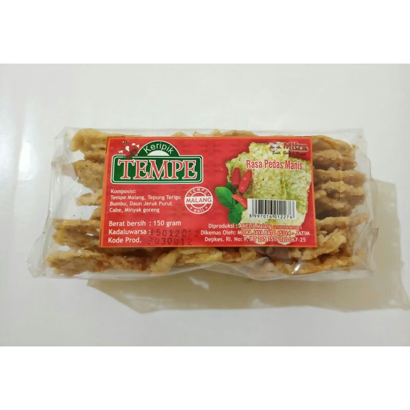 Kripik tempe mitra berbentuk bulat, dengan rasa pedas manis