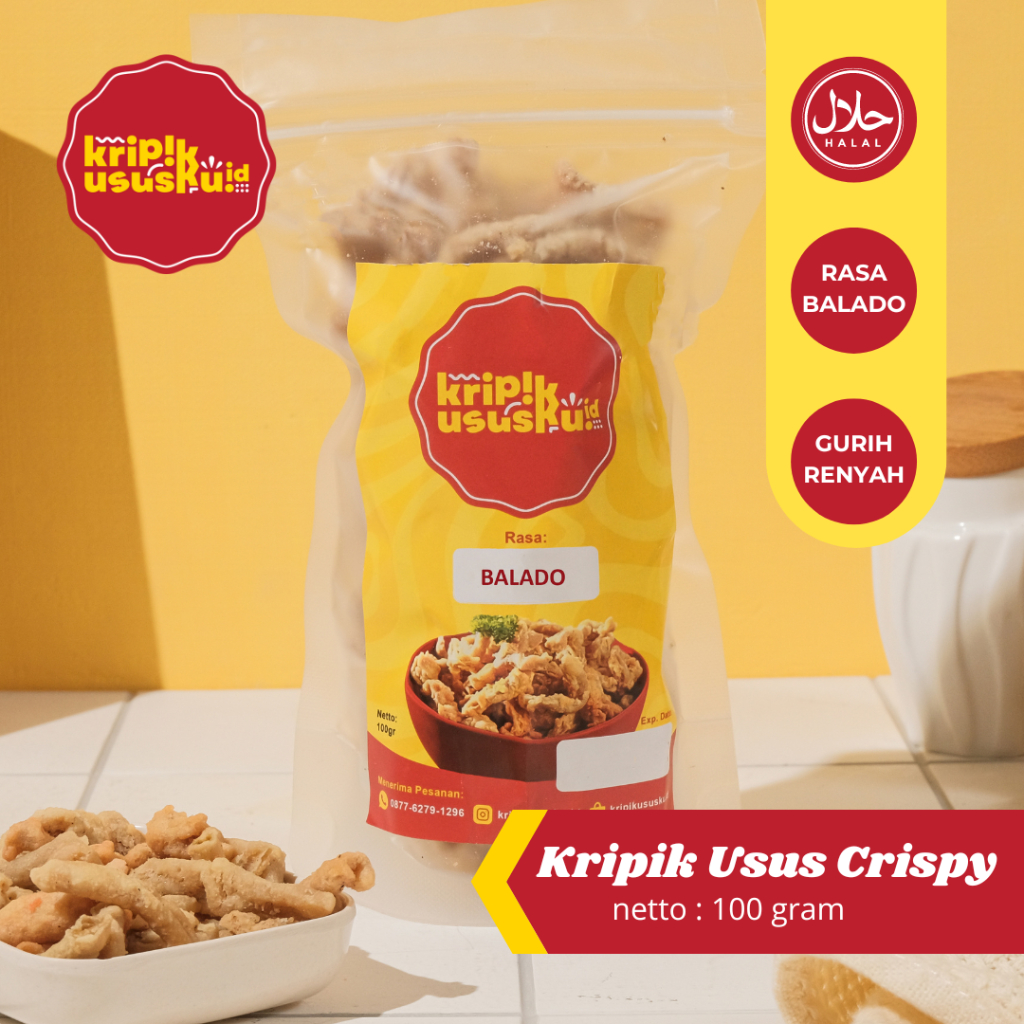 Kripik usus crispy merupakan olahan usus ayam dan tepung pilihan yang diracik dengan sepenuh hati hingga mendapatkan rasa yang enak, gurih, dan nagih. Digoreng dengan suhu terbaik membuat tekstur crispy pada kripik usus ini terasa maksimal. Dilengkapi bumbu balado dan rasa terbaik khas kripikususku.id.