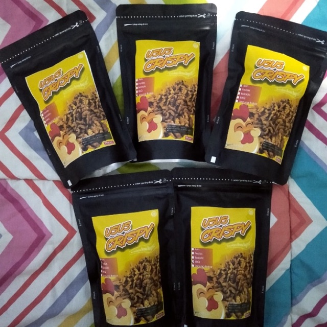 Kripik usus renyah, gurih, serta tidak menggunakan MSG dan pengawet makanan yg tentunya halal dan aman dikonsumsi anak-anak.