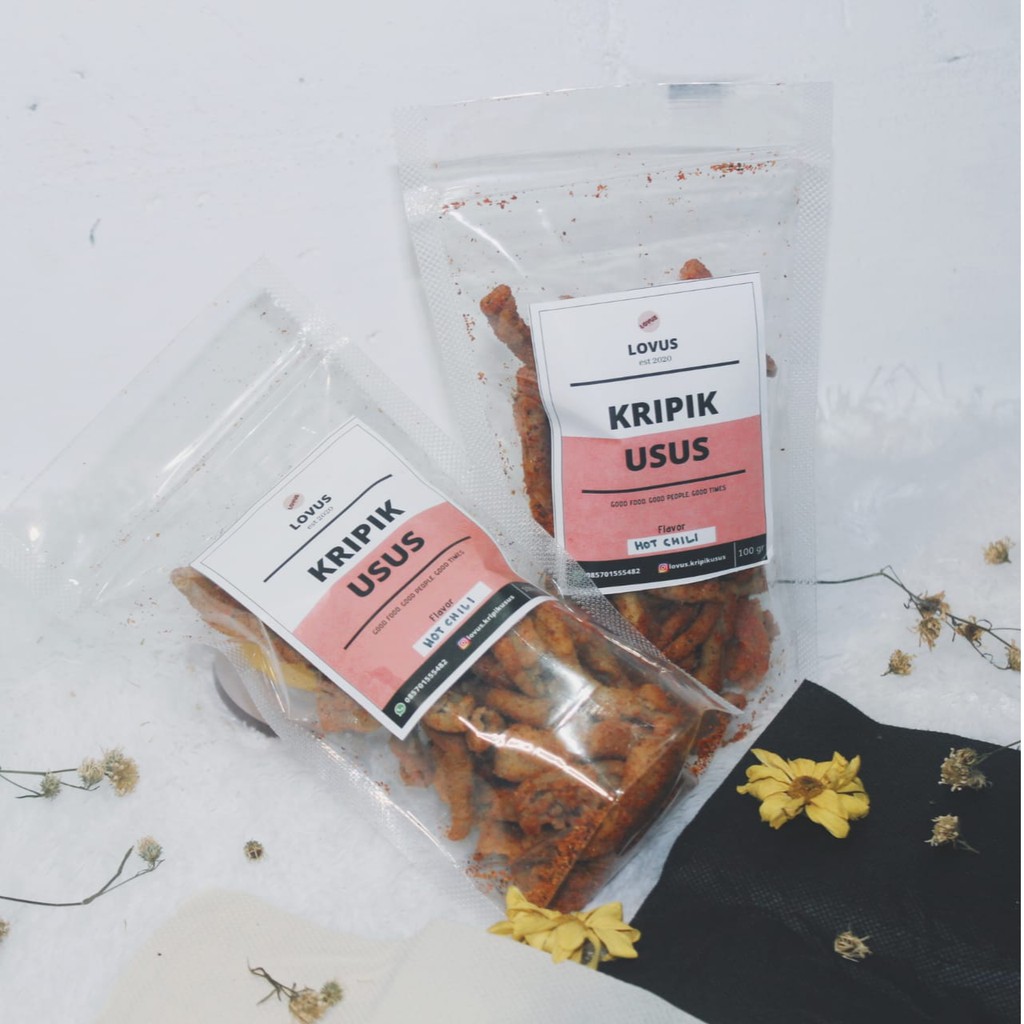 kripik usus "lovus" merupakan makanan ringan homemade yang dibuat dengan cita rasa yang khas, tersedia berbagai rasa untuk menambah keunikan dari kripik usus ini, kripik usus ini tahan sampai 1 bulan.