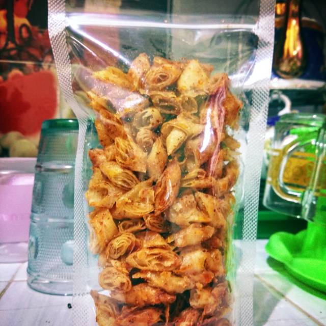 Kripik lumpia varian rasa : pedas (bisa request kepedasan), balado, asin+gurih, keju, jagung