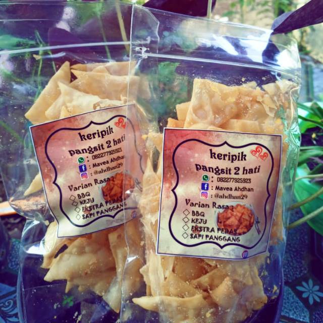 Kripik pangsit 2 hati ready setiap hari ya kak terbuat dari bahan bahan yang tetap terjangkau dan tidak menggunakan bahan pengawet.