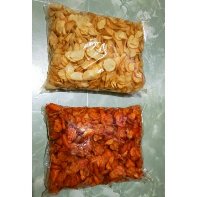 kripik singkong dengan 2 rasa yaitu rasa asin dan pedas