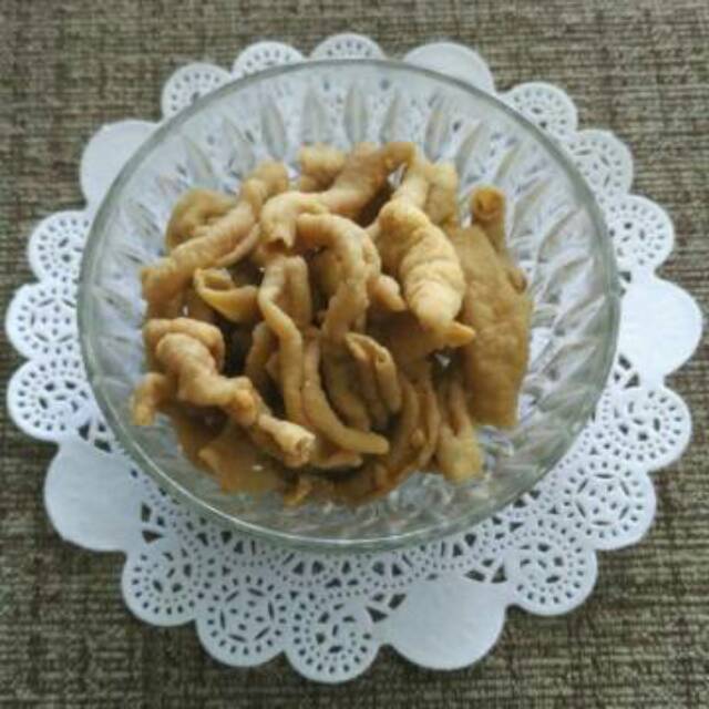 Camilan kripik usus ayam.