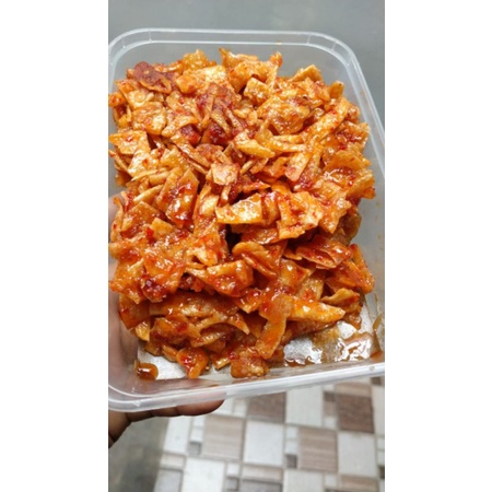 kripik yang terbuat dari singkong dengan rasa pedas manis