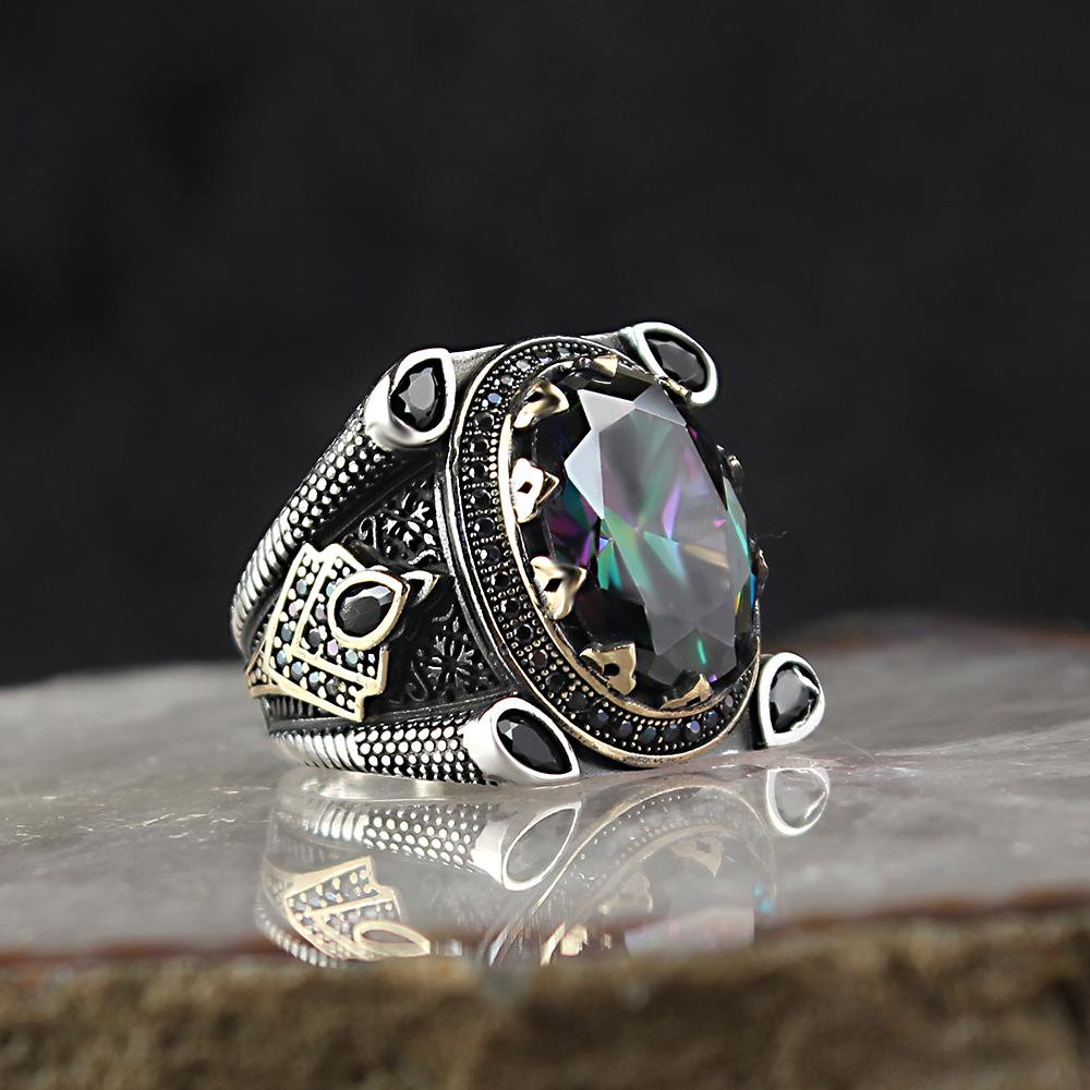 Kristal Kesim Mistik Topaz Taşlı Erkek Yüzük 925 Ayar Gümüş Takı 12