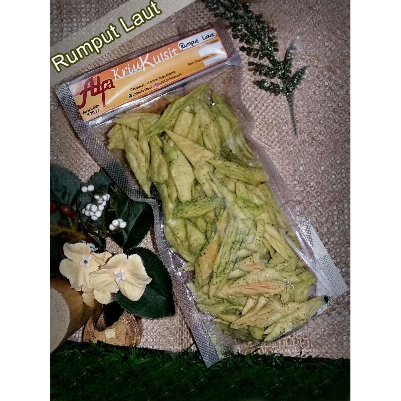 Camilan Kulit Pangsit goreng yang ditaburi dengan bumbu rasa rumput laut..