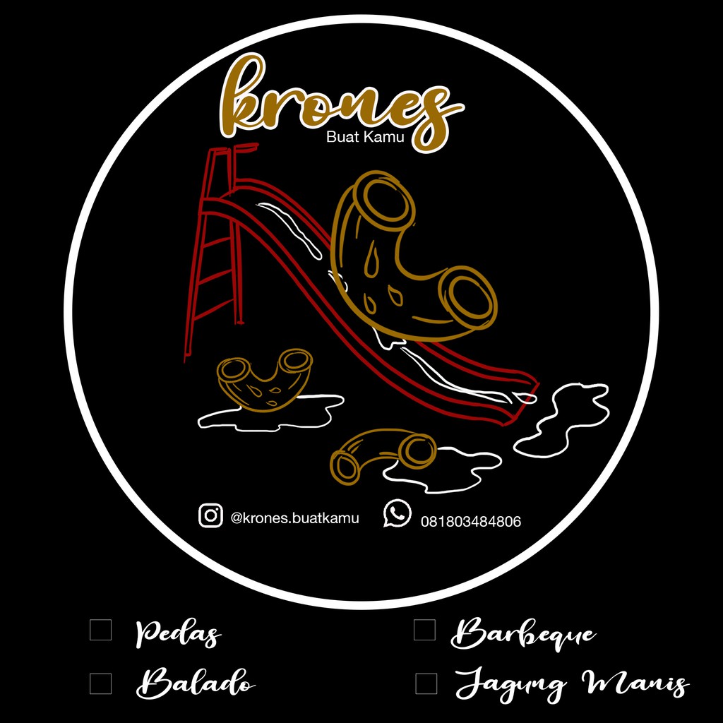 Krones (Makaroni Mayonaise), makaroni yang disajikan dengan 4 varian rasa yaitu pedas, balado, bbq, jagung manis bahkan kalian bisa memesan dengan 2 varian rasa yang dicampur menjadi satu, terlebih lagi dengan adanya mayonaise yang menjadi ciri klas dari krones. kalian dapat mencapurnya ataupun hanya mencocol makaroni yang ingin anda santap. kami hadir dengan harga 7000 såja.dan kita siap mengirim kemana tempat kalian berada. terimakasih.