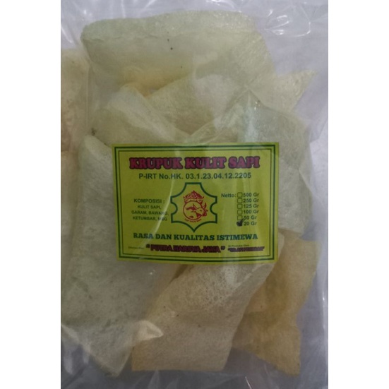 Krupuk kulit sapi dengan rasa yang gurih dan renyah.