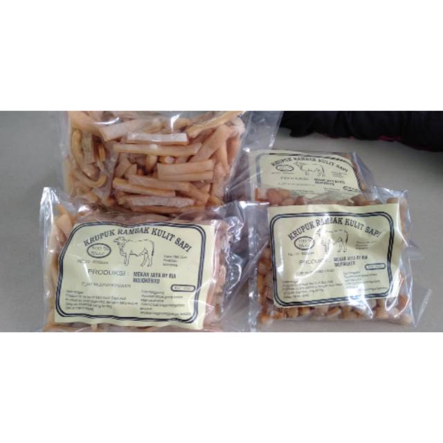 Krupuk Rambak asli kulit sapi,di padukan dengan bumbu rempah,rasanya renyah gurih,di goreng langsung mekar,tanpa di jemur.kemasan 1/4kg