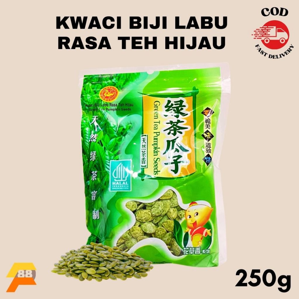 Nikmati renyahnya Kwaci Biji Labu Rasa Green Tea, camilan lezat dan bergizi yang cocok untuk segala suasana!