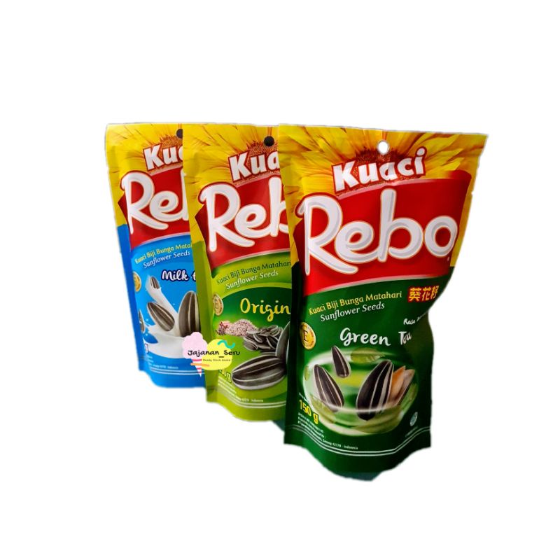 Kwaci Rebo Pouch 150gr dengan 3 varian rasa: