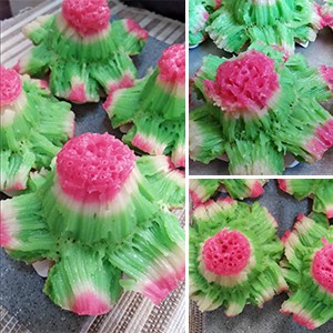Kue Bikang Warna-Warni dari tepung beras, tepung terigu dan santan.