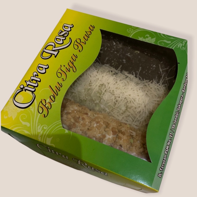 Ukuran bolu : 25 cm dalam satu box isi 3 buah rasa berbeda